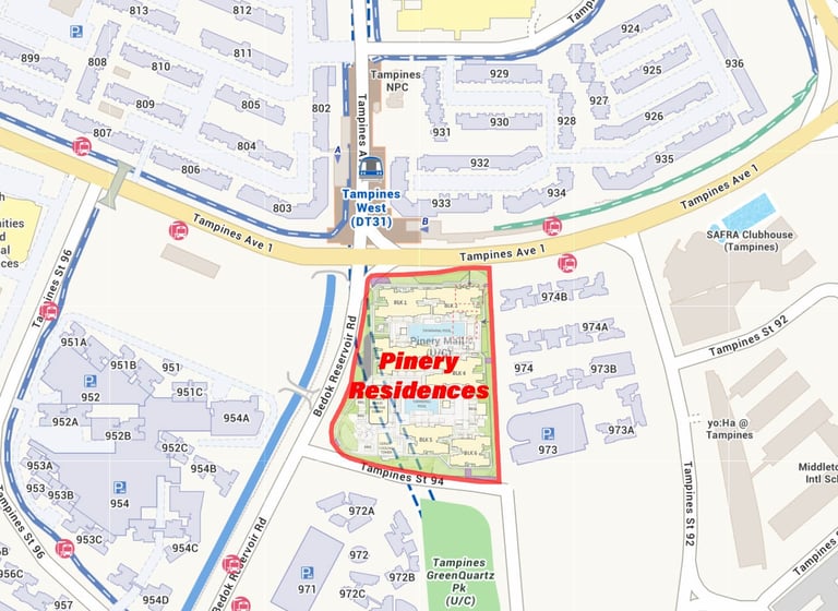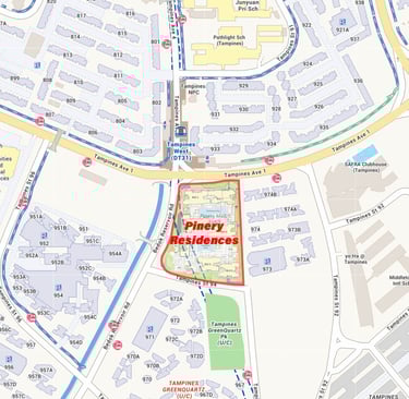 Pinery Residences is located along Tampines Street 94 in District 18. Just minutes from Tampines West MRT station. Its prime location offers excellent connectivity, access to established amenities, and proximity to Tampines’ vibrant town center.