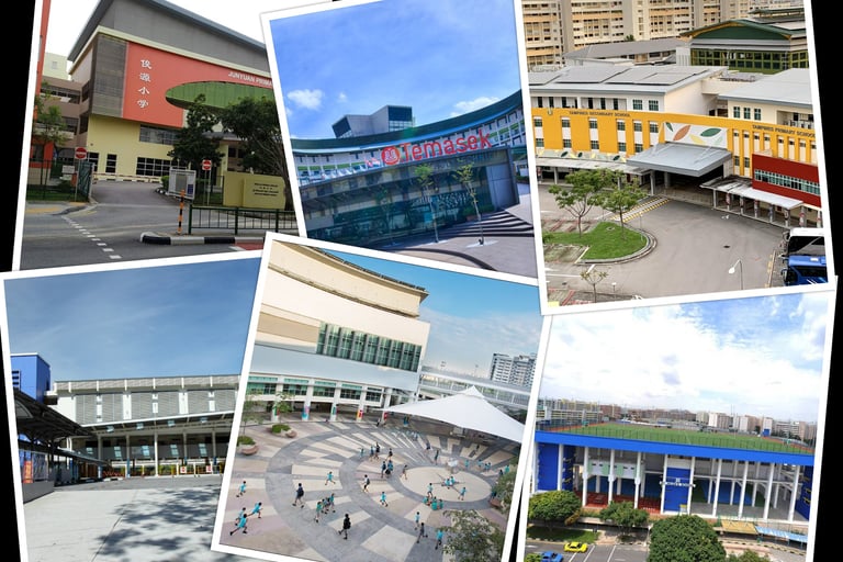 Junyuan Primary School and Tampines Primary Svhool aim to foster effective communication skills and confidence through programmes like applied learning and strong reading support.